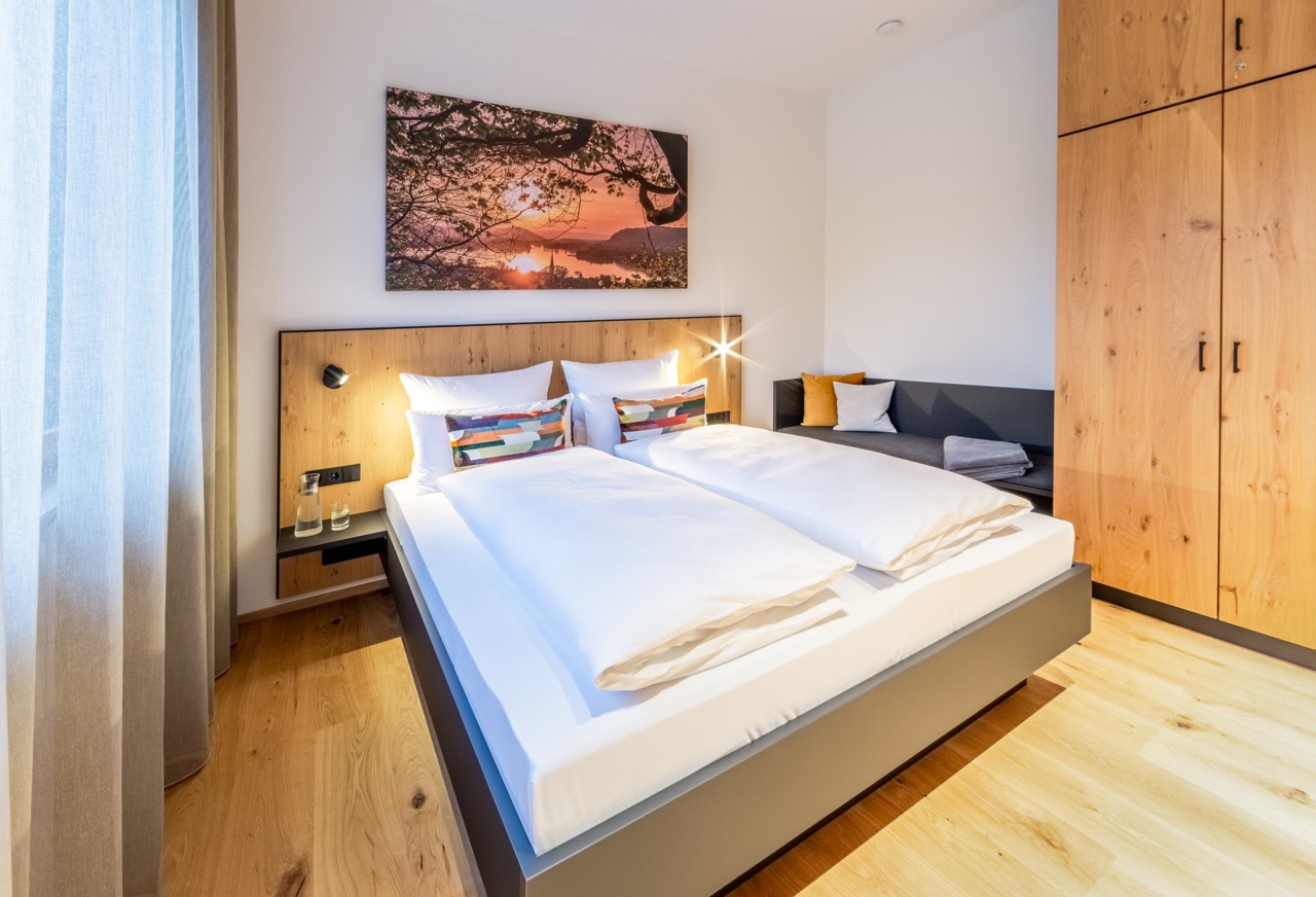 In der Feuerwache 2 trifft Geschichte auf Design: helles Holz, klare Linien und maßgefertigte Details schaffen ein Zuhause mit Seele für Auszeiten mit der Familie, Freunden oder dem Partner. Hier verbinden sich hochwertige Materialien, Licht und Raum zu einem Ort voller Ruhe und Stil. Behaglich, modern und bis ins Detail durchdacht, beispielsweise durch eine Klimananlage oder ein separates Zimmer für zwei Kids in einem praktischen Stockbett - für Stunden, die bleiben. Ein Rückzugsort am Bodensee, so einzigartig wie Ihr Urlaub.